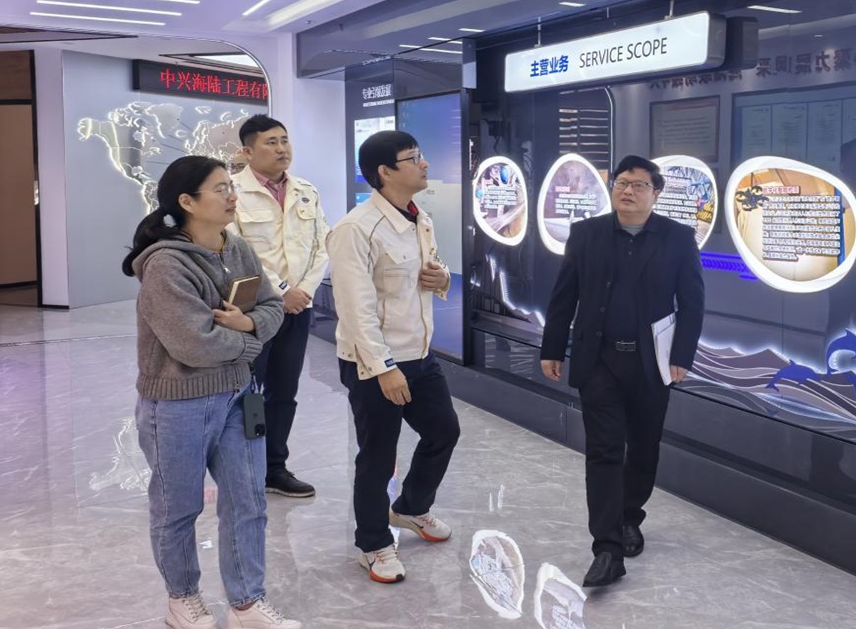 2026年1月16日,广州航海学院海洋装备工程学院院长陈爱国、副书记朱钧、副院长端木玉、智能海洋装备专业负责人唐善然一行,前往中远海运重工集团子公司中兴海陆工程有限公司(以下简称“中兴海陆”)进行专题调研与交流,受到了中兴海陆董事长潘永利、生产经营部部长焦卫红、安全管理部部长邓国权、人力资源部经理肖阳等热情接待。
