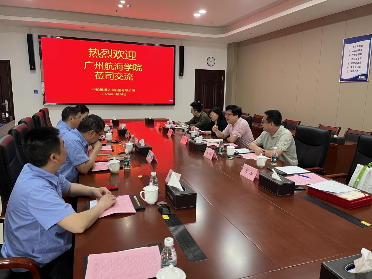 2026年3月24日,广州航海学院海洋装备工程学院院长陈爱国、副书记朱钧、能源动力系系主任仲皓想教授、肖华副教授、王占缘博士一行,上午前往黄埔文冲船舶有限公司(以下简称“文冲船舶”),下午前往广船国际有限公司(以下简称“广船国际”),分别与两家企业开展校企交流合作。文冲船舶人力资源部部长胡波,广船国际总经理助理(技术中心主任)崔彬、人力资源部部长何翾等公司代表参加交流。